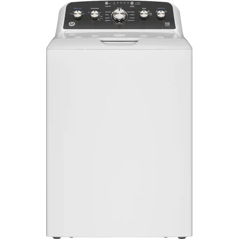 GE – 4.5 Cu. Ft. High-Efficiency Top Load Washer with Deep Fill and Cold Plus – White with Matte Black