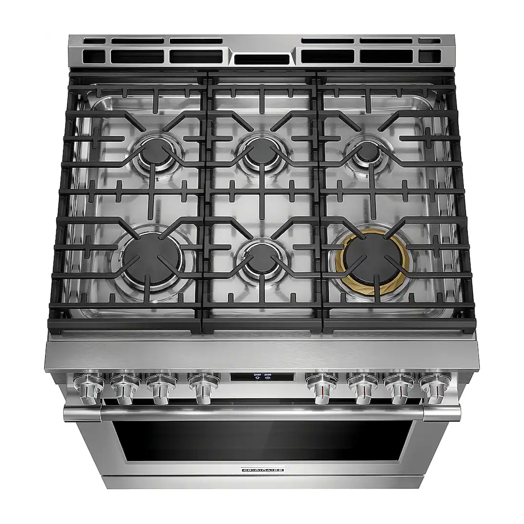 The Frigidaire Professional 6.0 Cu. Ft. Slide-In Total Convection Range with Air Fry, features its most powerful and advanced convection system, which enables cooking modes like No Preheat, Air Fry, Slow Cook, Steam Bake, Steam Roast, Air Sous Vide, Convection Roast, Convection Bake, Bread Proof and more! The flexible six burner cooktop includes our 18,000 BTU Even TempTM burner and an integrated cast iron griddle. This range also features backlit LED knobs and our fingerprint resistant, Smudge-Proof Stainless Steel finish.